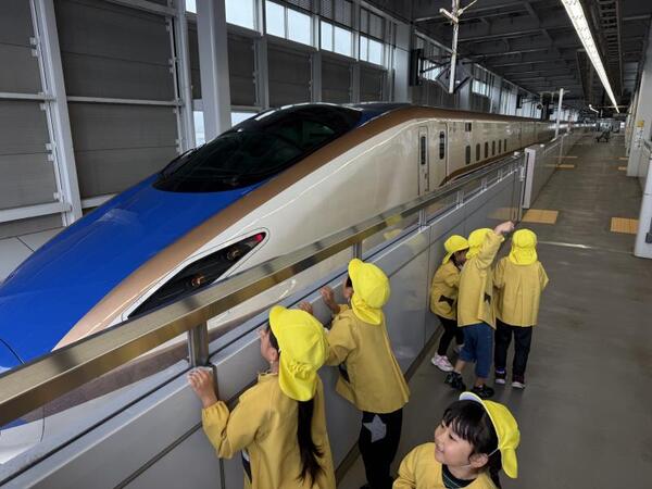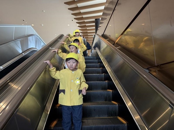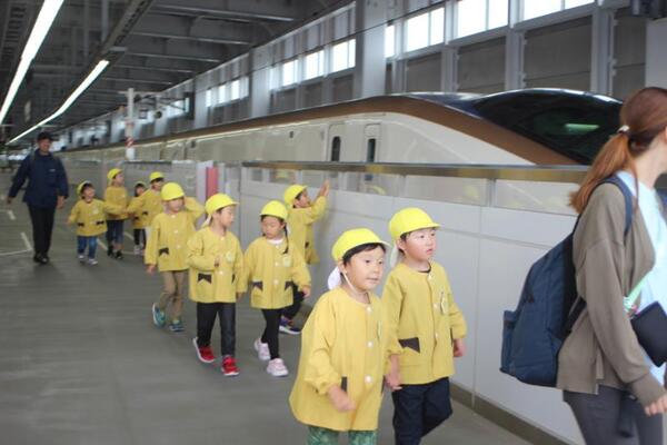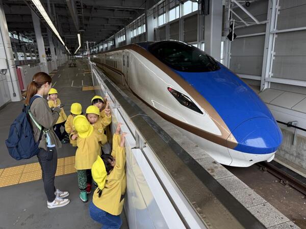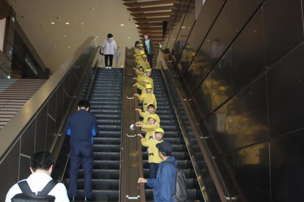 ひかり組は12月に上越新幹線に乗って東京行きを予定しています。年長組が東京へ行くのは昨年度に続いて2年目となります。目的地は上野動物園であり、この上越妙高駅へ来た理由は、エスカレーターの乗降練習のためです。新幹線で降りる上野駅構内ではエスカレーターに何回も乗ることになります。子どもたちが安全に乗ったり降りたりすることができるように練習です。何回か上ったり、降りたり…初めは怖がっていた子もだんだんと足を出すタイミングがわかってきましたよ!いい練習ができました。