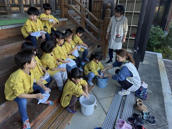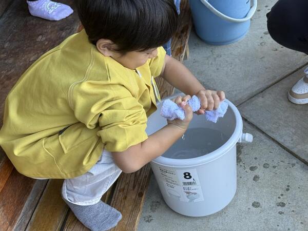 今日は、ひかり組さんが「シャカシャカおにぎり」をするということで、その前段階としてお米を研いでもらいました!「おうちでやったことあるよ!」と言いながら意気揚々と研いでいる子、「お水冷たい!」と言いながら肩をすくめる子など…お米を研ぐという作業を、それぞれ体感していました。食材や料理に興味を持つという意味でも、おうちでのお手伝いはとても素敵なことだと思います。怪我のない範囲で、子どもたちでもできることをお手伝いしてもらってください。きっと、やる気満々でお手伝いしてくれると思いますよ!