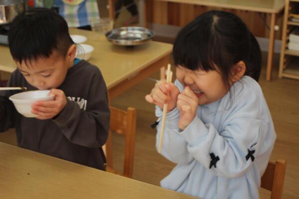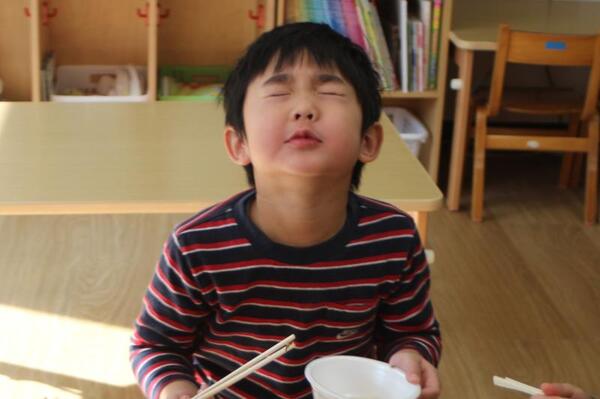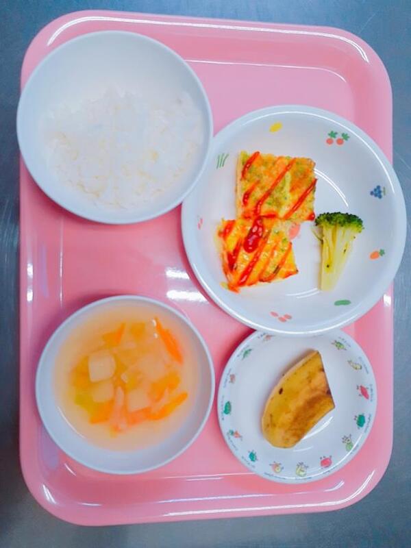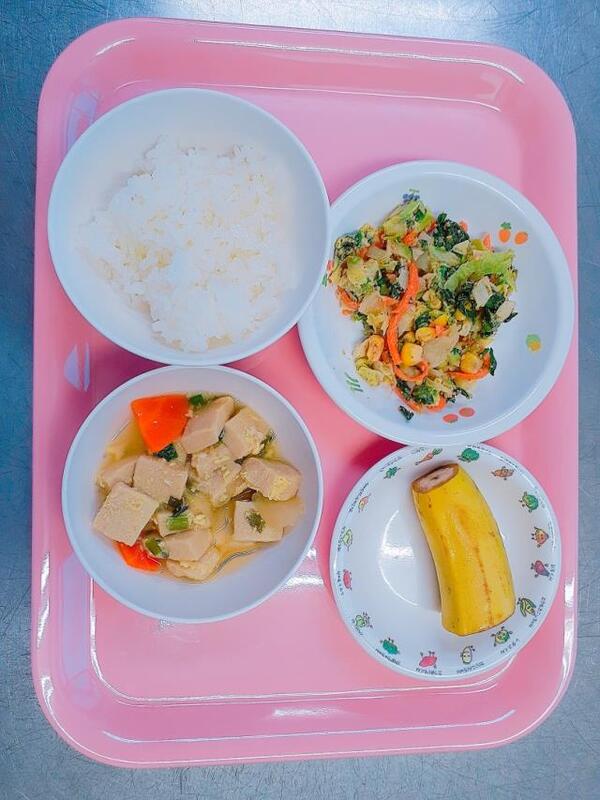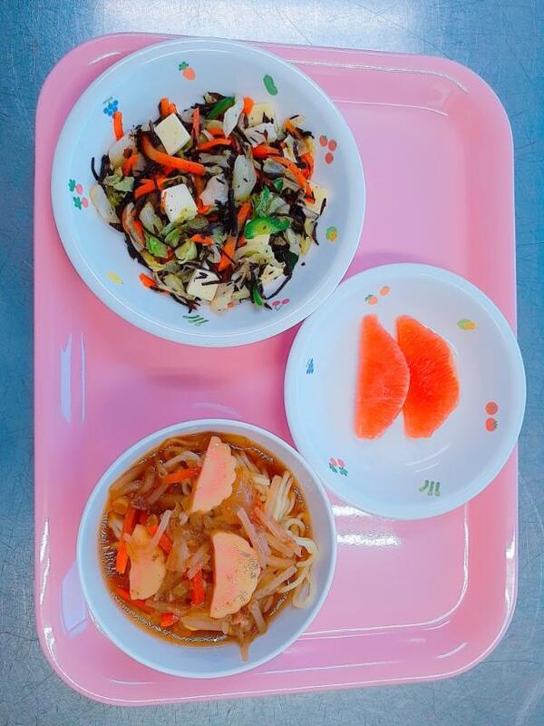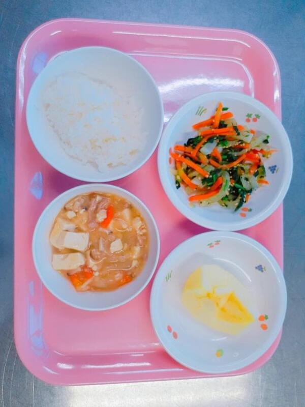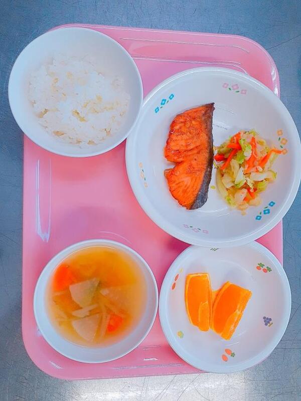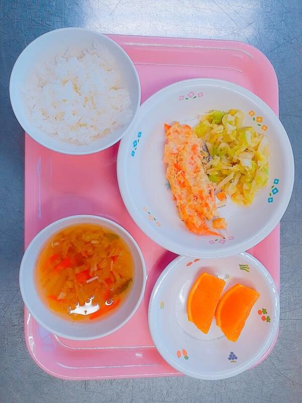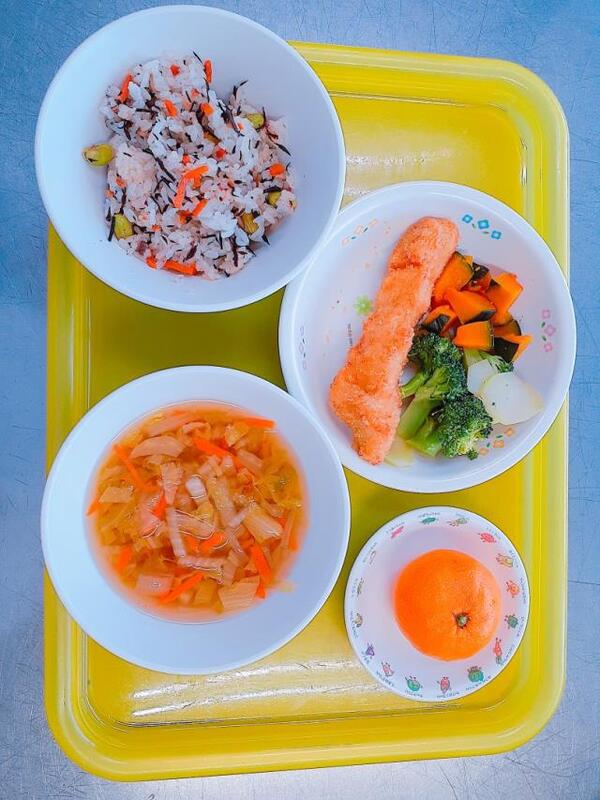 今日は、和え物にオータムポエムが入りました。しかし、普段からよく登場する食材ではない上に、子どもたちは苦手な子が多いです。ごまとわかめの風味で、存在感を薄められたかな??と期待しています(笑)