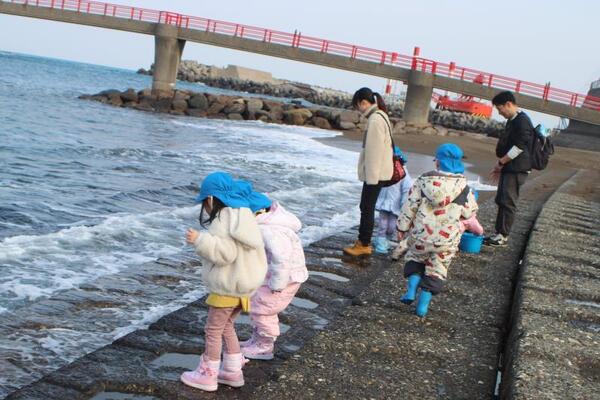 雪国の冬ど真ん中ではありますが、昨日は青空が広がり、気温が10度近くまで上がりました。まりん組さんと弁天浜に出かけましたよ!真冬に弁天浜で遊ぶということはめったにできないことです。まりん組さんは弁天岩にも上って、そこからぐるりと日本海の景色を楽しんでいましたよ。