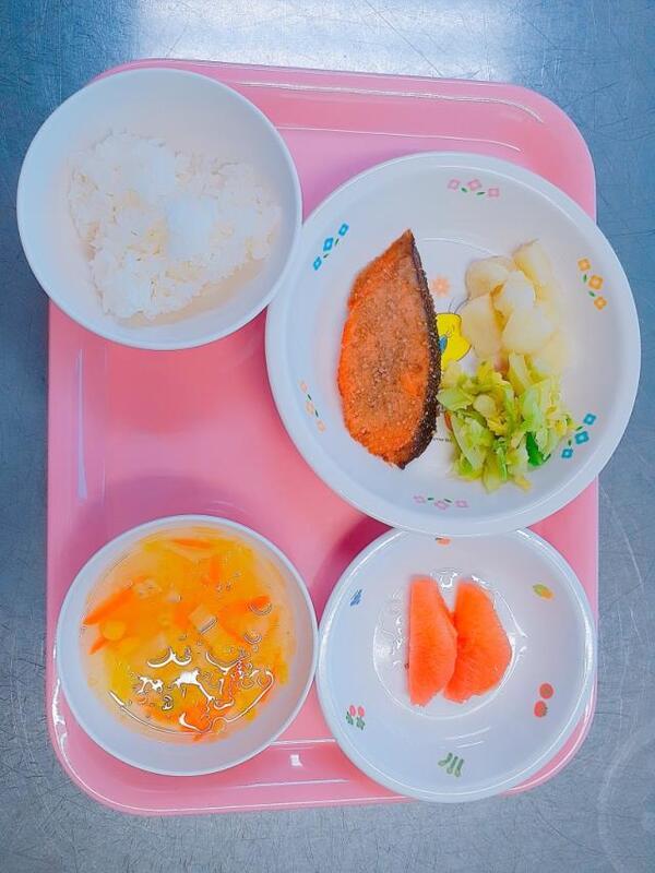 月に一度登場する高野豆腐ですが、今日はひき肉が入ったそぼろ煮でした。とろみがついているので冷めにくく、食べやすかったと思います。