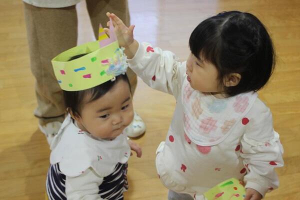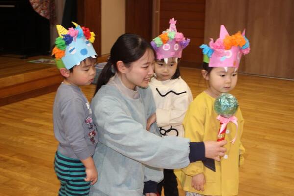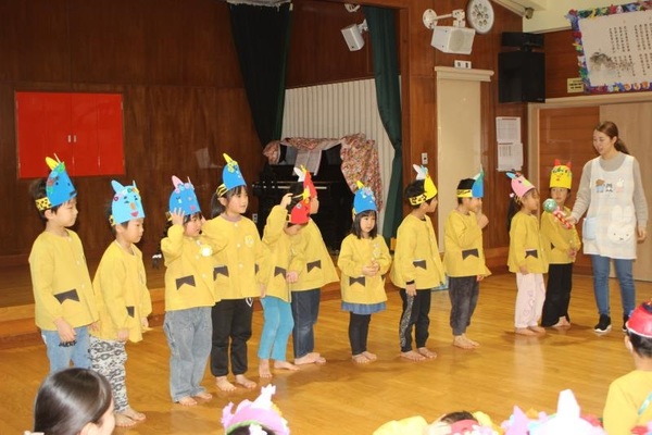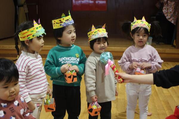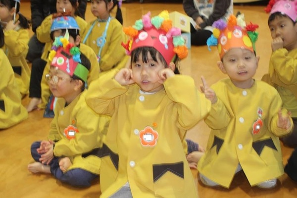 今日は立春ですね!少しだけ春を感じることができるようなおひさまがさしました。昨日は節分ということで、園では節分集会をしました。まずは未満児さんのよすです。