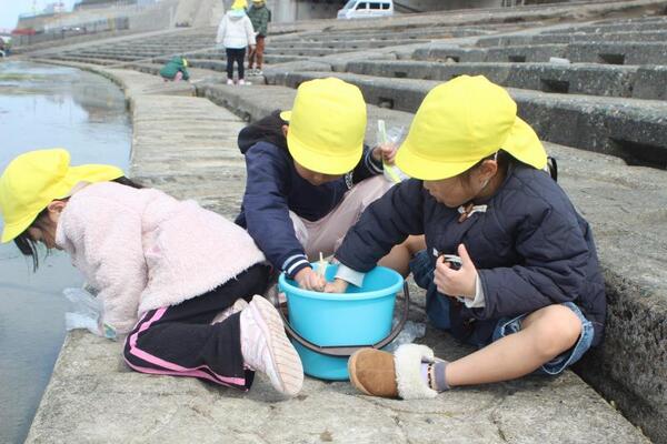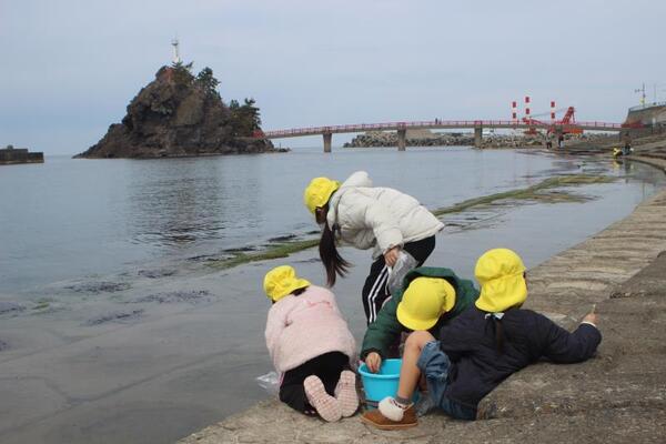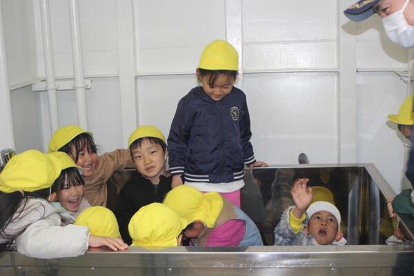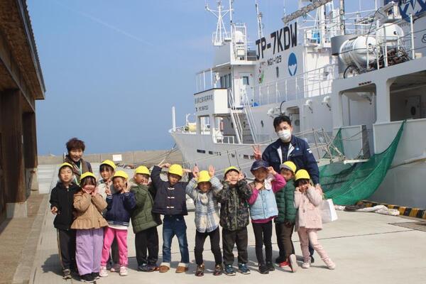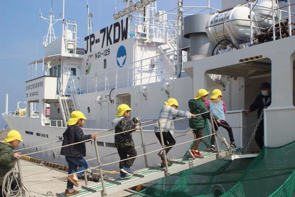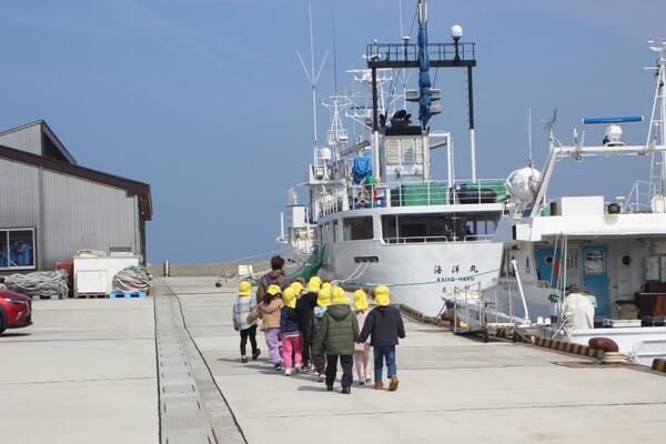 昨日、まりん組、ひかり組は小泊漁港へお散歩に出かけました。午前中はまりん組さんが、午後はひかり組さんが海洋丸の中を見学させていただきました。こちらは午後のひかり組さんの様子です。海洋高校とはずっと交流を続け、この実習船海洋丸の見送り、お出迎えも何度もさせていただきました。
