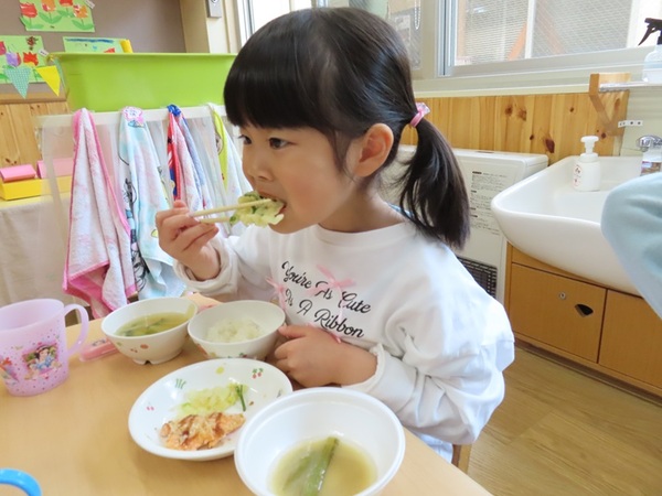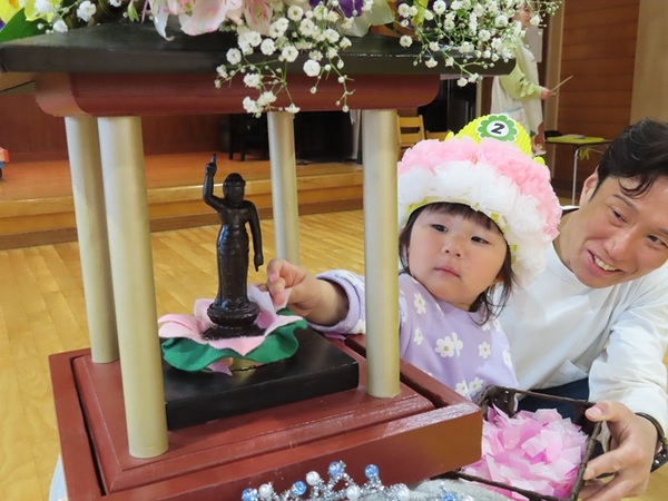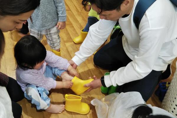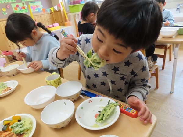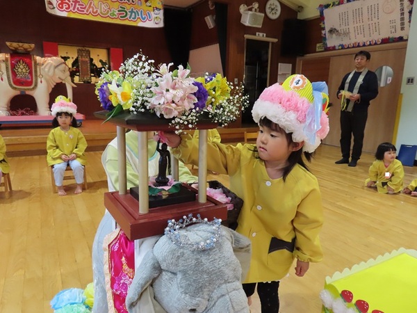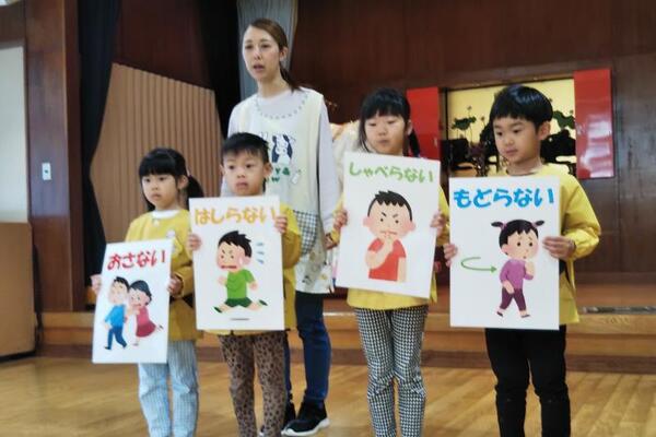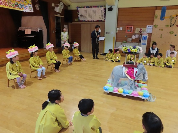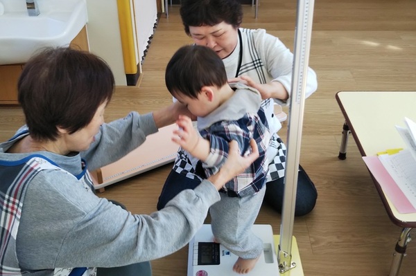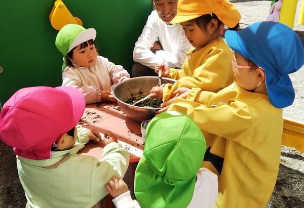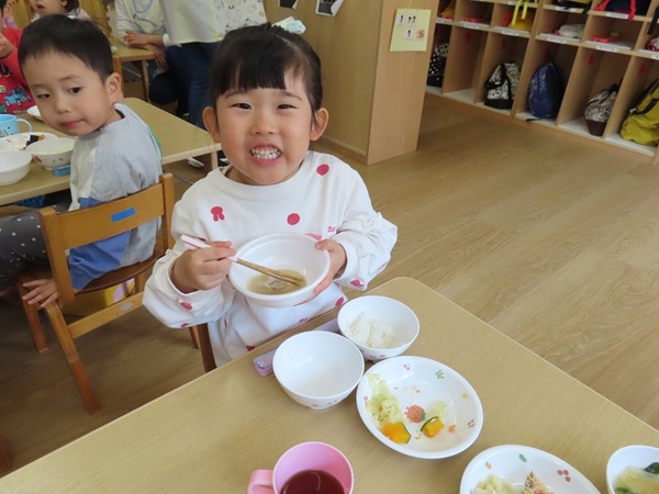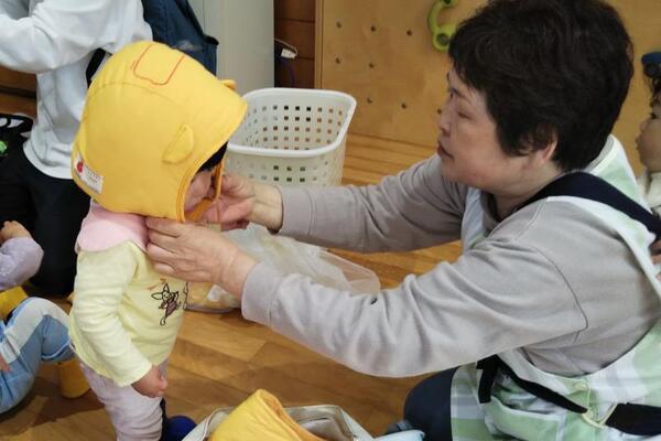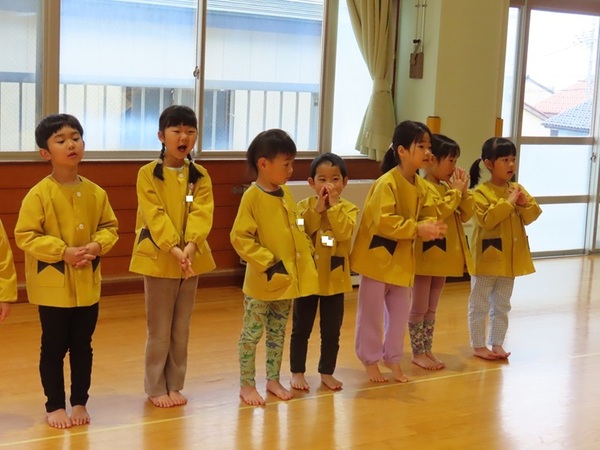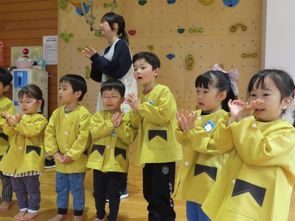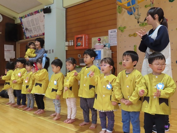 今年度は3歳児と4歳児が合同クラスとなっています。今後は少子化もあり、クラスの枠にこだわらずいろいろな年齢のこども同士が触れ合うことは、一人ひとりの成長のために大事になると考えています。