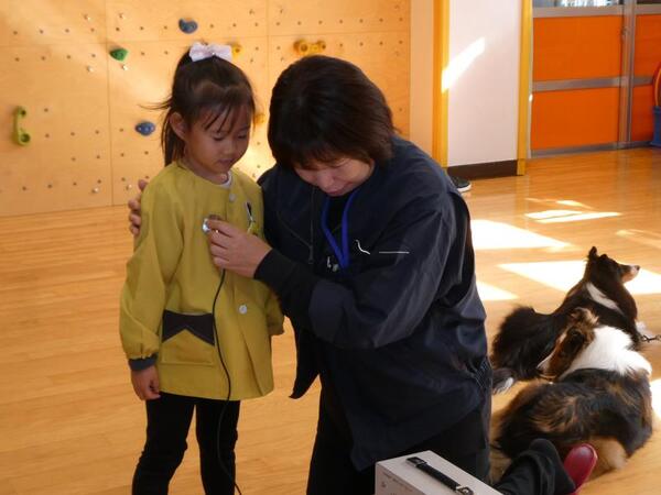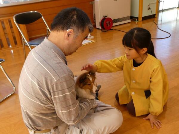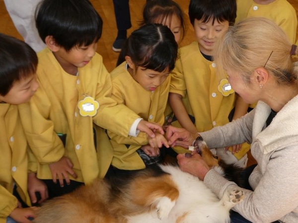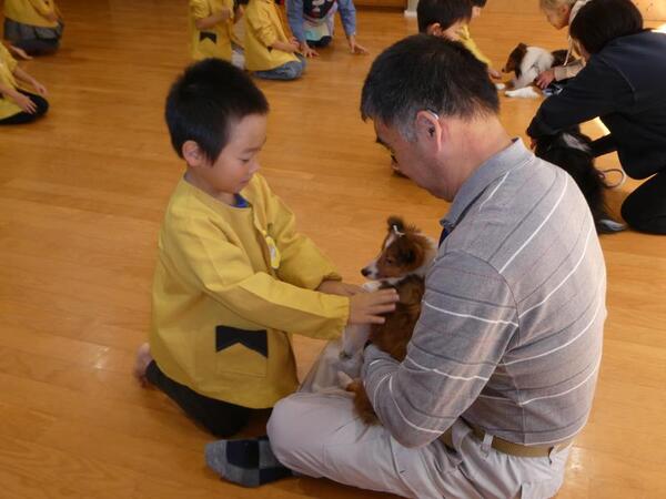 子どもたちは職員さんのお話をよく聞いて、静かにやさしくワンちゃんに接することができました。人間だけではなく、生き物にはみんな大事な「いのち」がありますね。どんな「いのち」も大切にしていきたいですね。ワンちゃんを観察したり、飼い主さんや職員さんのお話を聞いたり、ワンちゃんに触れてみたりして、一人ひとりが「いのち」を感じたことと思います。