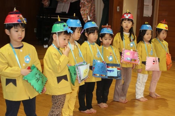 こちらは以上児さんの節分集会の様子です。どんな鬼を作ったのかな?「ぼくのおにはね…」泣き虫鬼・ヤダヤダ鬼・すききらい鬼・ねぼう鬼…などなど、みんなの前でお話しましたよ!