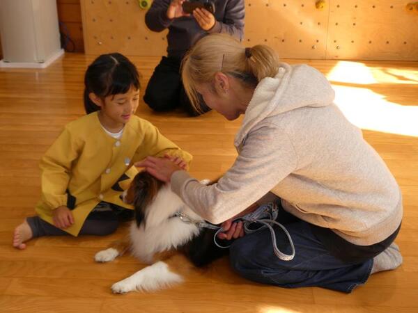 昨日、ひかり組さんが参加して、動物ふれあい方教室がありました。上越動物保護管理センターより職員の方と犬3頭、飼い主の方をお迎えし、動物との接し方についてお話をお聞きしました。また3頭のワンちゃんとふれあいの時間もありました。