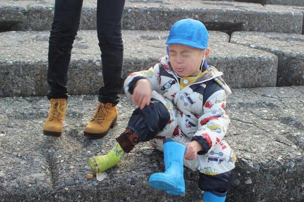 その後、護岸のコンクリートにつく天然の岩海苔を見つけました。「これが食べられるの〜?」「これがのりなの〜?」と不思議そうに触っていましたよ!海苔と言えばおにぎりの海苔ですね。子どもたちは乾いてパリパリしているのが海苔のイメージですね。何とか手で採ろうといっしょうけんめい!夢中になって、顔から、波をざぶんと浴びた子もいました。