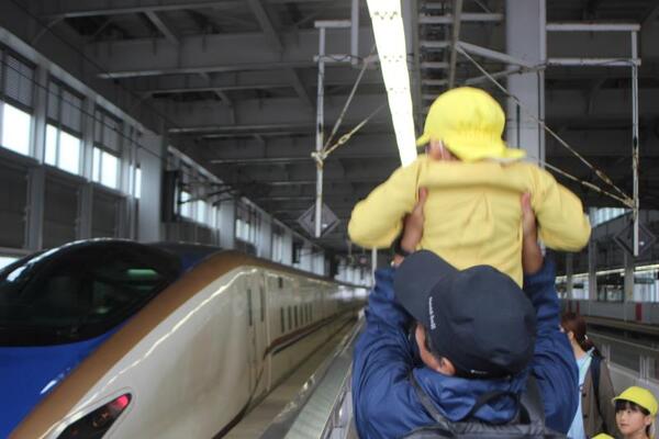 ちょうど新幹線の到着の時間でもあり、入場券で改札を入り、金沢方面行きの新幹線を見送ることができました。また回送で停車中の新幹線もあり、12車両を端から端まで見ながら歩いて、その長さを実感することができました。