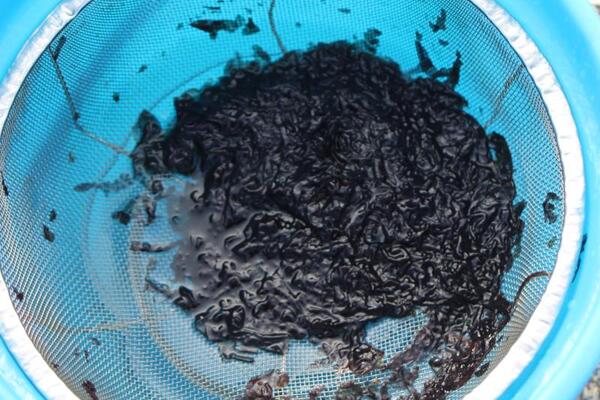 海苔はコンクリートにへばりついていて柔らかく、ぬるぬるしていて本当につまみにくくなかなかとれませんでしたが、何とか片手一杯ほどになり、園に持って帰りました。