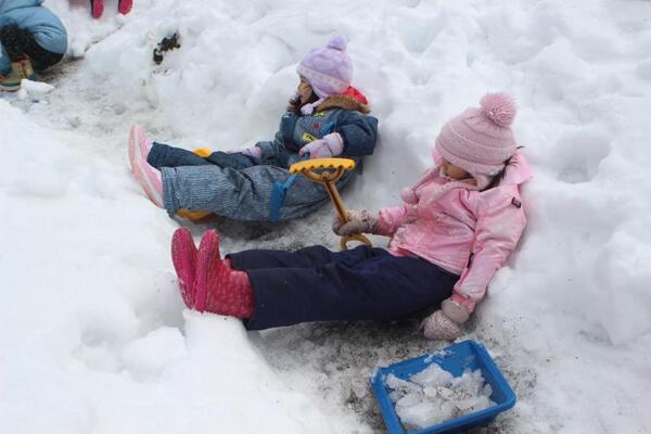 今週はやっと天候が落ち着き、昨日はひかり組さんが午後から園庭へ出ました。園庭は50cmほどの積雪です。冬ならではの遊びが楽しくて、そり遊びや雪のままごとなど時間が過ぎるのも忘れるくらいです。今週は気温が上がる予報が出ています。外で遊べるチャンスを大事にして楽しませたいです!