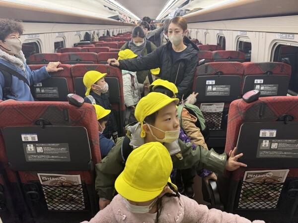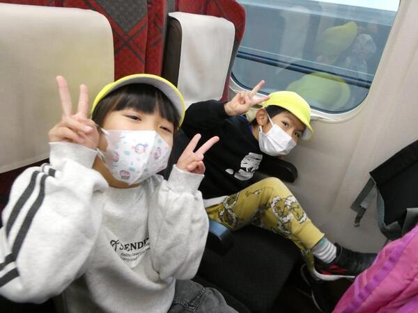 帰りの新幹線の中は一日の疲れも出たり、お腹もすいたり…座席に座り、糸魚川に向かって新幹線が動き出すとホッとしたようでした。動物園の様子など先生や友だちと楽しくおしゃべりして帰ってきました。